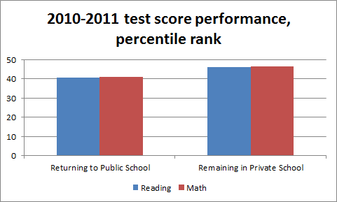 Figlio found that students who returned to the public schools, despite being eligible to keep their scholarship, ranked 5.4 percentile points lower in reading and math than the students who remained in the scholarship program.