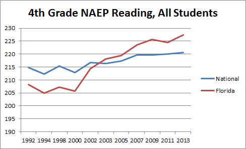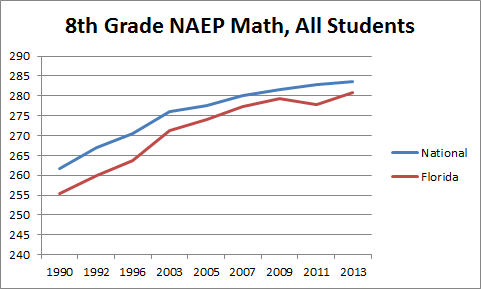 […] Florida Again Showing Progress on NAEPRedefineEd reports significant gains on NAEP 8th grade reading and math tests due to improving scores of low income and minority students from 2011-13.. […]
