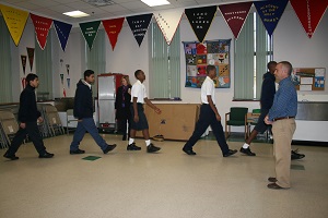 After breakfast, Academy Prep students line up by grade and wait to be greeted by Tamayo or another academy staff member. On this morning, it’s history teacher Henry Ibanez, who extends his right hand to every girl and boy, looks them in the eye and says, “Good morning.’’