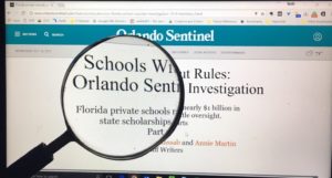 The state’s oversight, the Sentinel writes, is “limited.” A curriculum called “Accelerated Christian Education” is delivered at “some” schools. The state Department of Education (DOE) gives unwarranted second chances to schools “often.” One Orlando school has “some” teachers without degrees. The state allows “many” schools to enroll scholarship students when they first open. “Many” private schools lack amenities at public schools. The list of regulatory requirements is “short,” the barrier to entry is “low.”