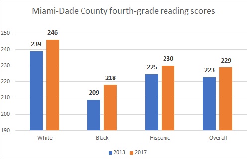 Like in Miami-Dade, improvement among black fourth-graders outpaced improvement among other groups and helped drive positive numbers for the city as a whole.