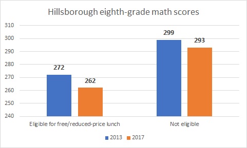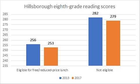 Much like Dade and Duval, the district that includes Tampa was at or near the top of the class in several categories of raw test performance. Its eighth-grade reading scores led the urban districts included on the Nation’s Report Card.