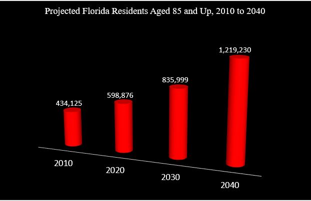 The Census Bureau made these projections some time ago and decided to leave the task of updating projections to the state. Fortunately, Florida’s Office of Economic and Demographic Research (EDR) has created updated age demography projections for the state. There’s good news and there’s bad news in the updated EDR projections. The good news: They aren’t as scary as the Census projections. The bad news: It’s not by much.