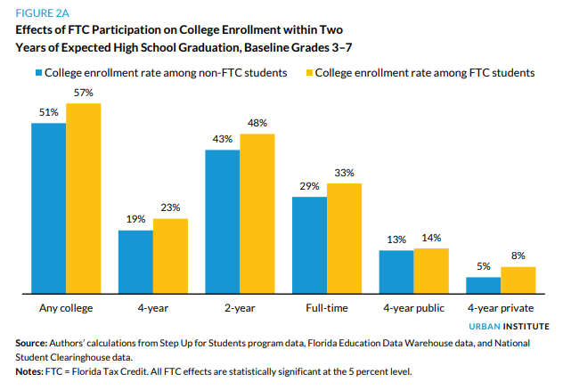 […] research from the Urban Institute, for example, shows low-income students participating in Florida’s tax-credit scholarship program, the country’s largest, have higher college enrollment and completion rates than their […]