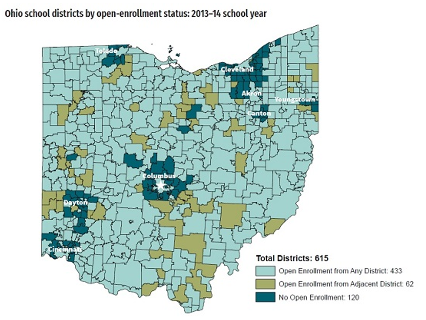 I’m a big supporter of open enrollment, and it is tragically understudied. What we do know, however, is that it is far more complex than simply passing an open enrollment law to get open enrollment transfers to happen. For instance, a decade after Professor Warren’s proposal, the Thomas B. Fordham Institute found open enrollment in Ohio looks like this: