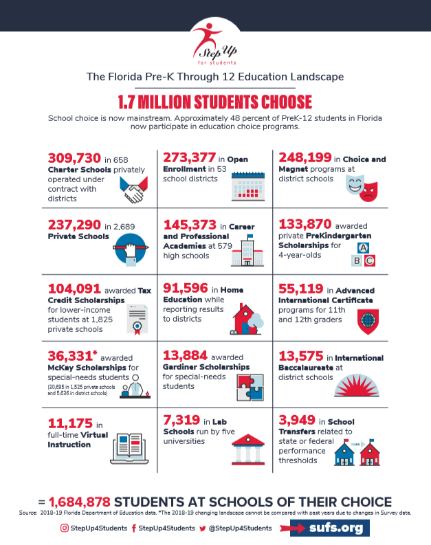 As the 10th annual National School Choice Week celebration kicks off, Step Up For Students unveils its 11th annual “Changing Landscapes” infographic, a document that explores student enrollment in public and private school choice options statewide for the 2018-19 school year.