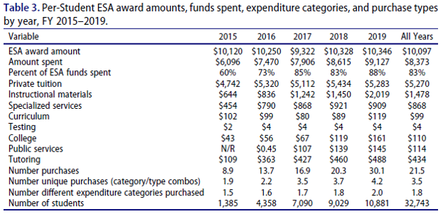 Researchers found that students enrolled in the program longer use a higher percentage of their ESA funds, use their funds more frequently to purchase items, and make purchases from multiple categories of spending.