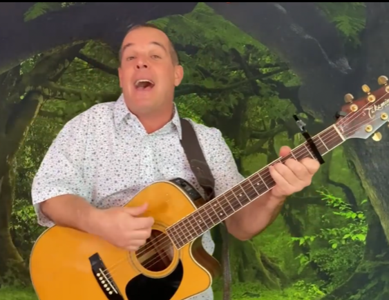 He always shows up for his online classes with his guitar and composes ditties on the spot that incorporate students’ names with the concepts he’s teaching.