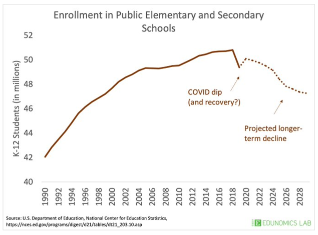 In the fall of 2019, American public-school enrollment stood at 50,796,445 students, as it turned out, a peak likely not to be revisited in our lifetimes.