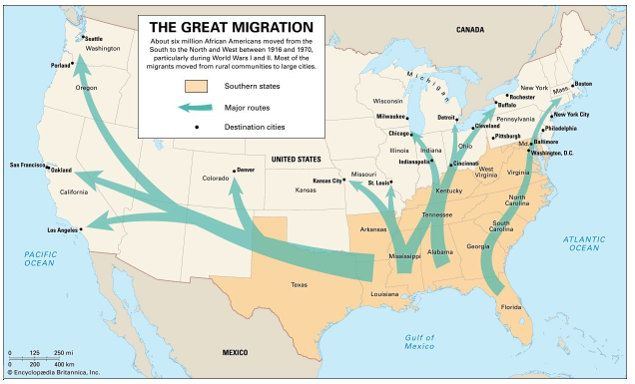 The Great Migration was one of the largest movements of people in United States history. Approximately six million Black people moved from the American South to Northern, Midwestern, and Western states roughly from the 1910s until the 1970s. The driving force behind the mass movement was to escape racial violence, pursue economic and educational opportunities, and obtain freedom from the oppression of Jim Crow.