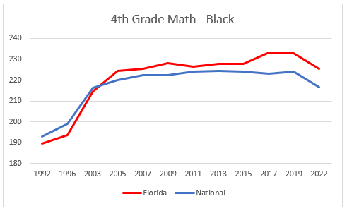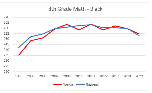 Florida’s black students performed slightly better than their peers nationally and lost 4.6 points compared to 6.8 points nationally.