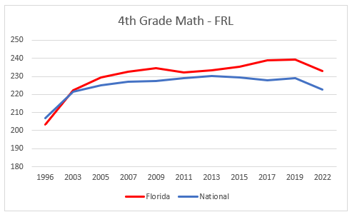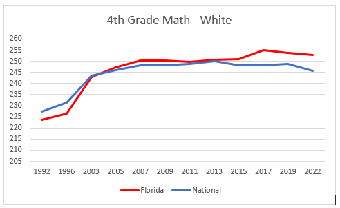 Florida’s white fourth-grade students lost 1.1 points compared to 3.1 points nationally.