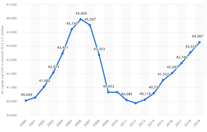 *Source: Florida: per capita real GDP 2000-2019 | Statista