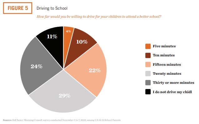The most common response to EdChoice’s surveys was that parents were willing to travel up to 20 minutes to get their child to a school they perceived as high-quality, though some indicated they’d be willing to travel longer.