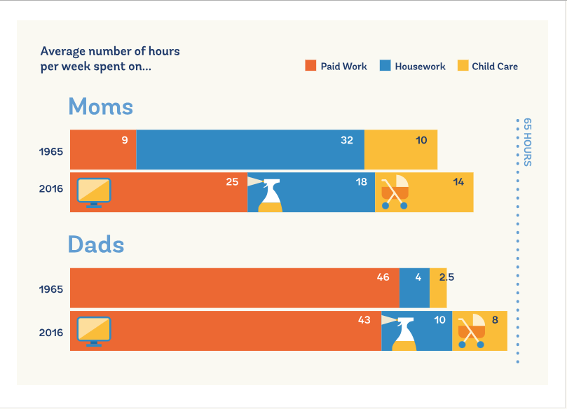 An underplayed fact, reported by Pew and recently resurfaced by Matt Yglesias: the typical father today spends almost as much time on childcare as a mother did in ‘60s.