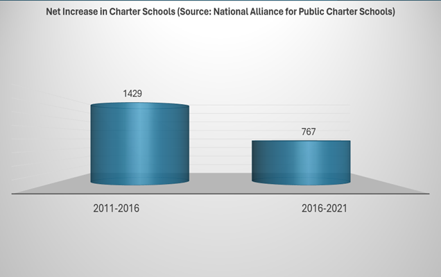 After 2021, both interest and building costs went up for charter school construction. Interest rates of course could go down, but they could also (gulp) go further up. A slowdown in the rate of new charter openings happened before the increase in interest and construction costs: