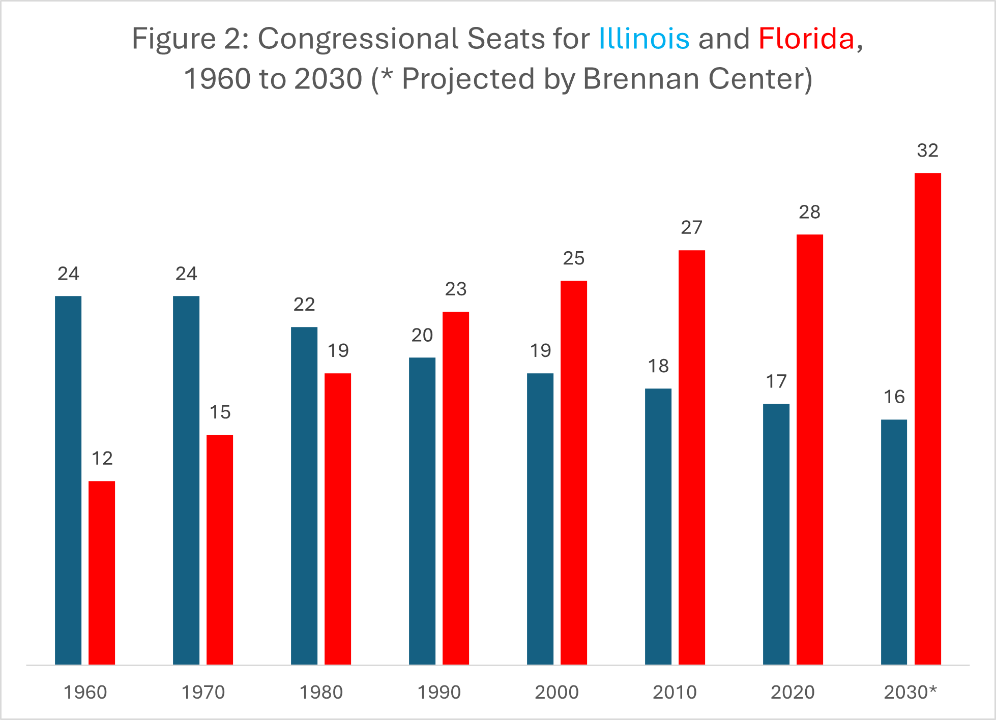 Depeche Mode once sang about “the grabbing hands grab all they can” but the same song noted “everything counts in large amounts.” For example, within the lifetimes of many reading this post, Illinois will have gone from having twice as many seats in Congress as Florida, to half as many (see below).