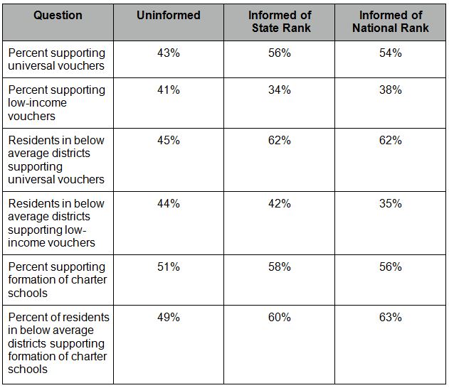 The reason? According to the survey results, Americans become more favorable to school choice (and other education reforms) when they are better informed about the relative achievement of students at local schools.