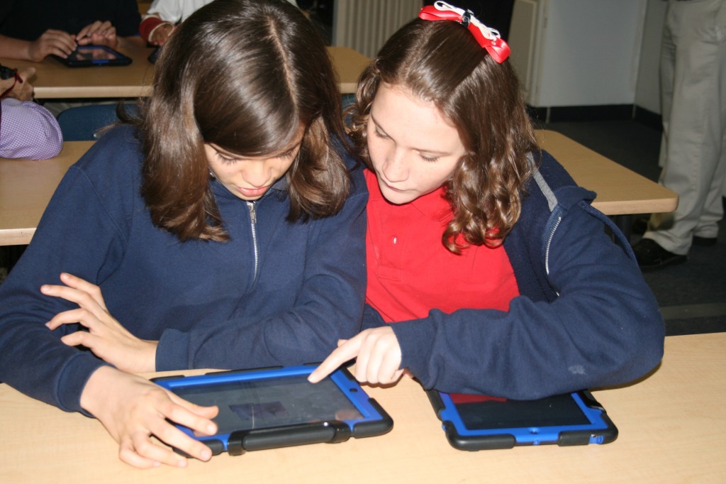 That’s what students and teachers have been doing at Dayspring since August, when the middle school rolled out iPads for all 202 boys and girls. Teachers took part in training even before the school year began, Principal Sara Calleja said, and continue to meet weekly to learning new skills and help each other. Sometimes, she said, students are the ones teaching the teachers.