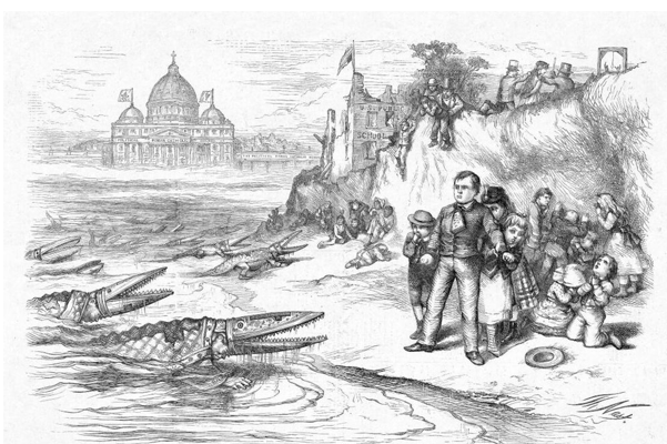 It may seem difficult to believe, given our 21st century levels of enlightenment, but the late 19th and early 20th centuries saw a prolonged anti-immigrant backlash against immigrants in general and religious minorities in particular. Groups such as the Know-Nothings and the Ku Klux Klan warned of a “Catholic Menace.”