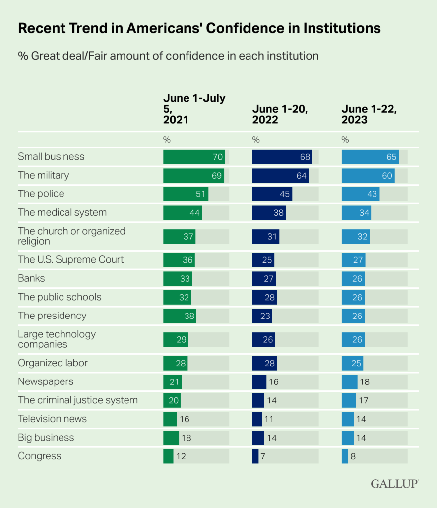 26: Percentage, according to Gallup, of Americans who express at least “a fair amount” of confidence in the nation’s public schools.