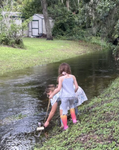 Within minutes, the explorers were building tree forts, making “tea” in a mud kitchen, and trying to identify a species of pseudo-scorpion they found on a slash pine.