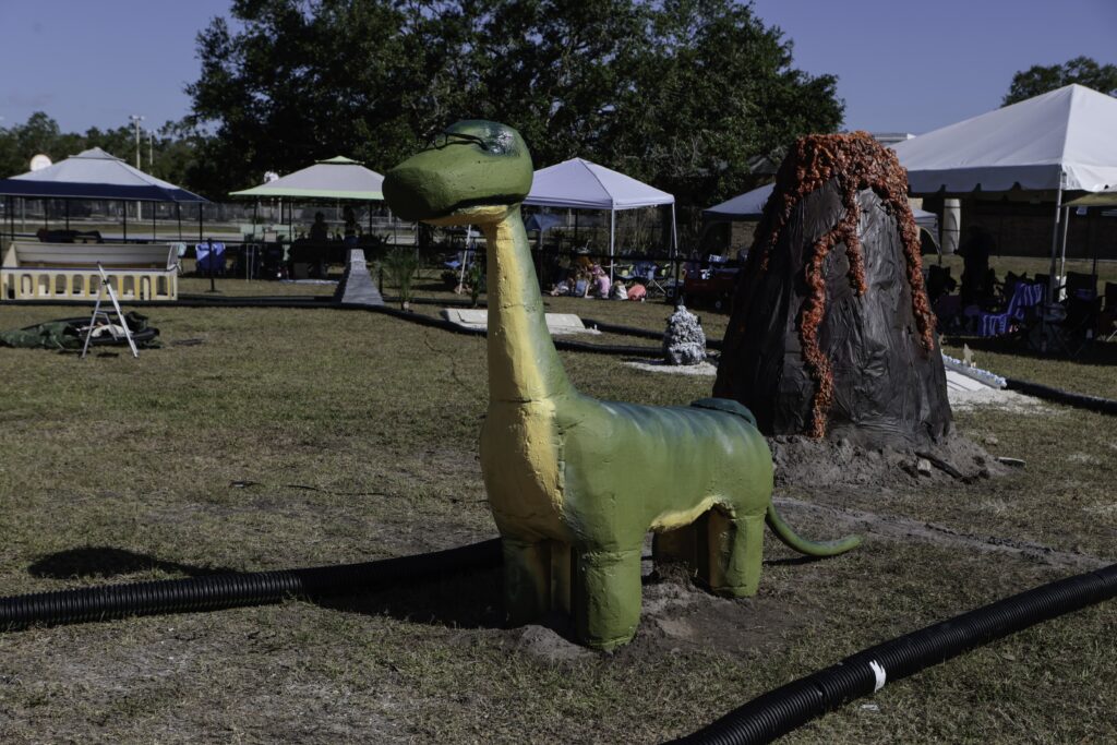 They build remote-controlled cars and participate in “car wars.” The RC cars race around a course filled with obstacles. The last race had a dinosaur theme, which meant the cars had to dodge a moving dinosaur tail and a volcano spewing lava. The winning car earns a place of honor on a wall of fame.