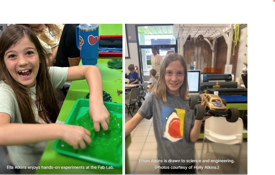 “It’s incredible that high school students are creating and leading these programs,” said Holly Atkins, whose son Ethan, 11, and daughter Ella, 8, receive the PEP scholarship and have attended Fab Lab for the past two years. “They really connect with the younger kids.”