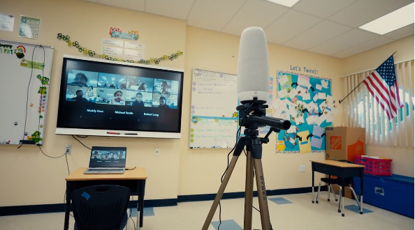 This isn’t a teacher sitting in front of a computer screen of Zoom squares, checking to see if worksheets have been completed, Capwell says. Online students will learn the same curriculum, at the same time, as students in the actual classroom. In fact, 360-degree cameras and microphones put the online students in the classroom and follow the teacher around during a lesson, even when classes break up into smaller groups, making for an interactive experience. That includes online students interacting with their in-person classmates.